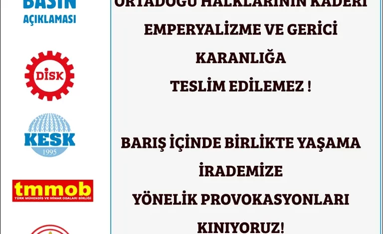 ORTADOĞU HALKLARININ KADERİ EMPERYALİZME VE GERİCİ KARANLIĞA TESLİM EDİLEMEZ! BARIŞ İÇİNDE BİRLİKTE YAŞAMA İRADEMİZE YÖNELİK PROVOKASYONLARI KINIYORUZ!